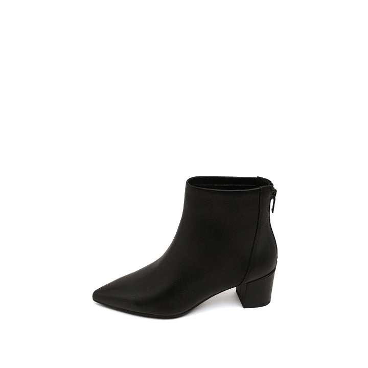 Black Leather Pointy Heeled Ankle Boots