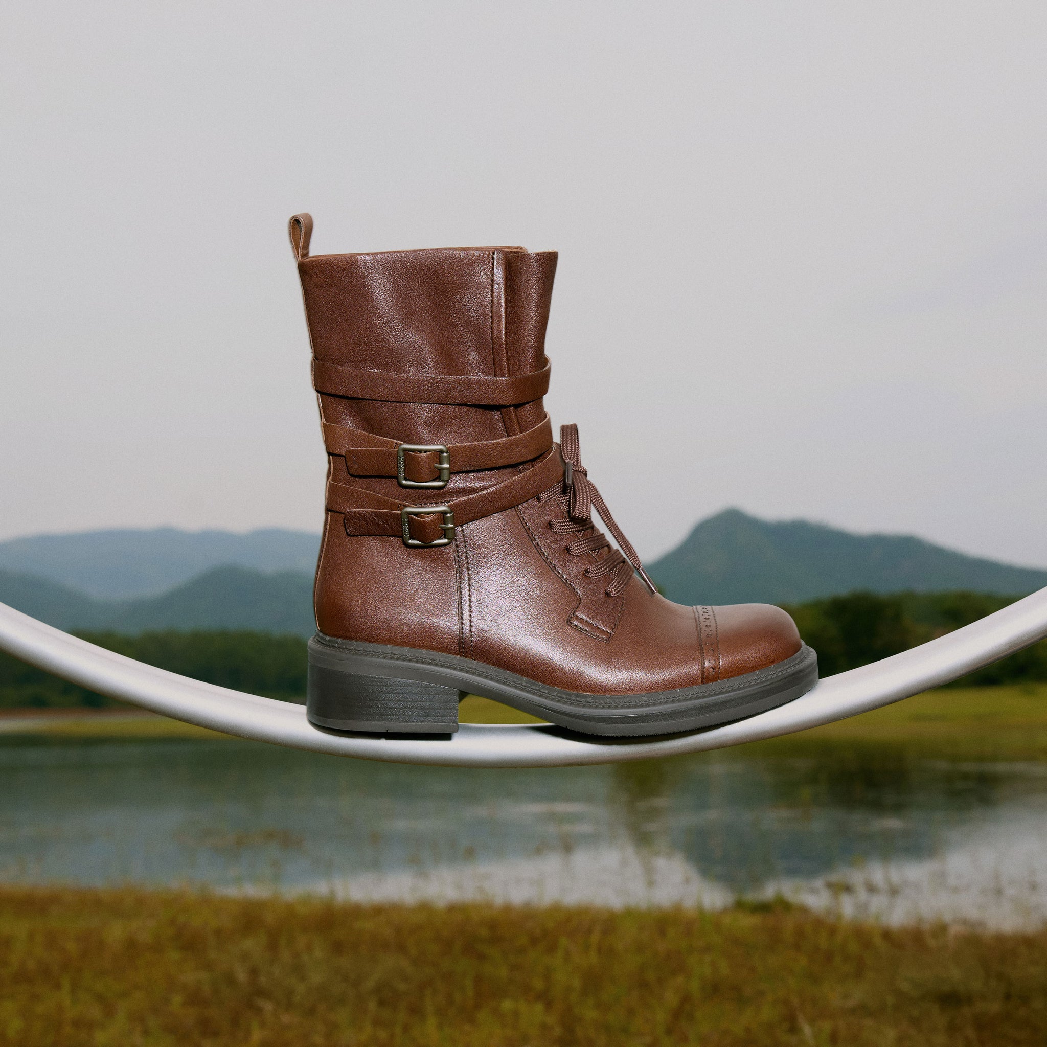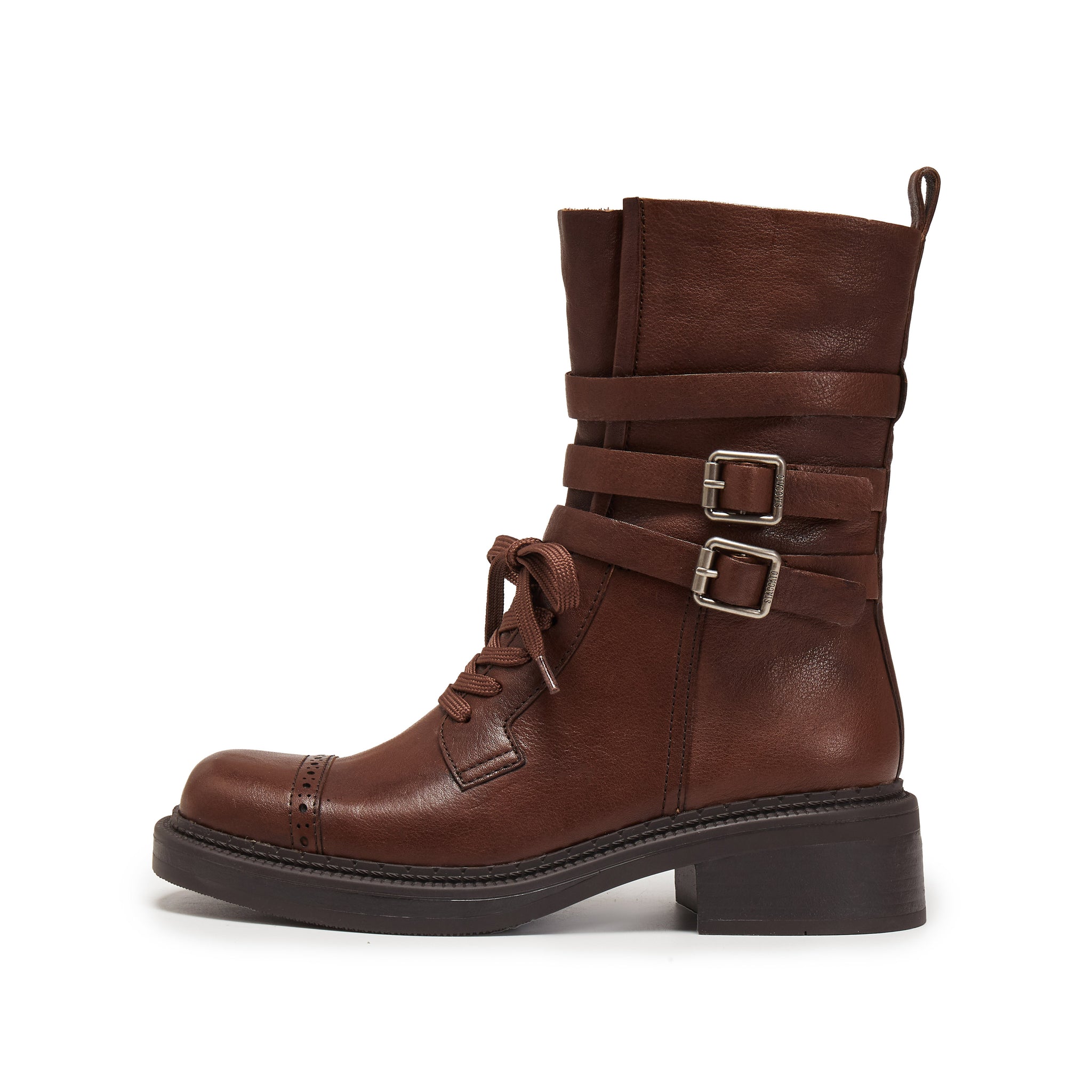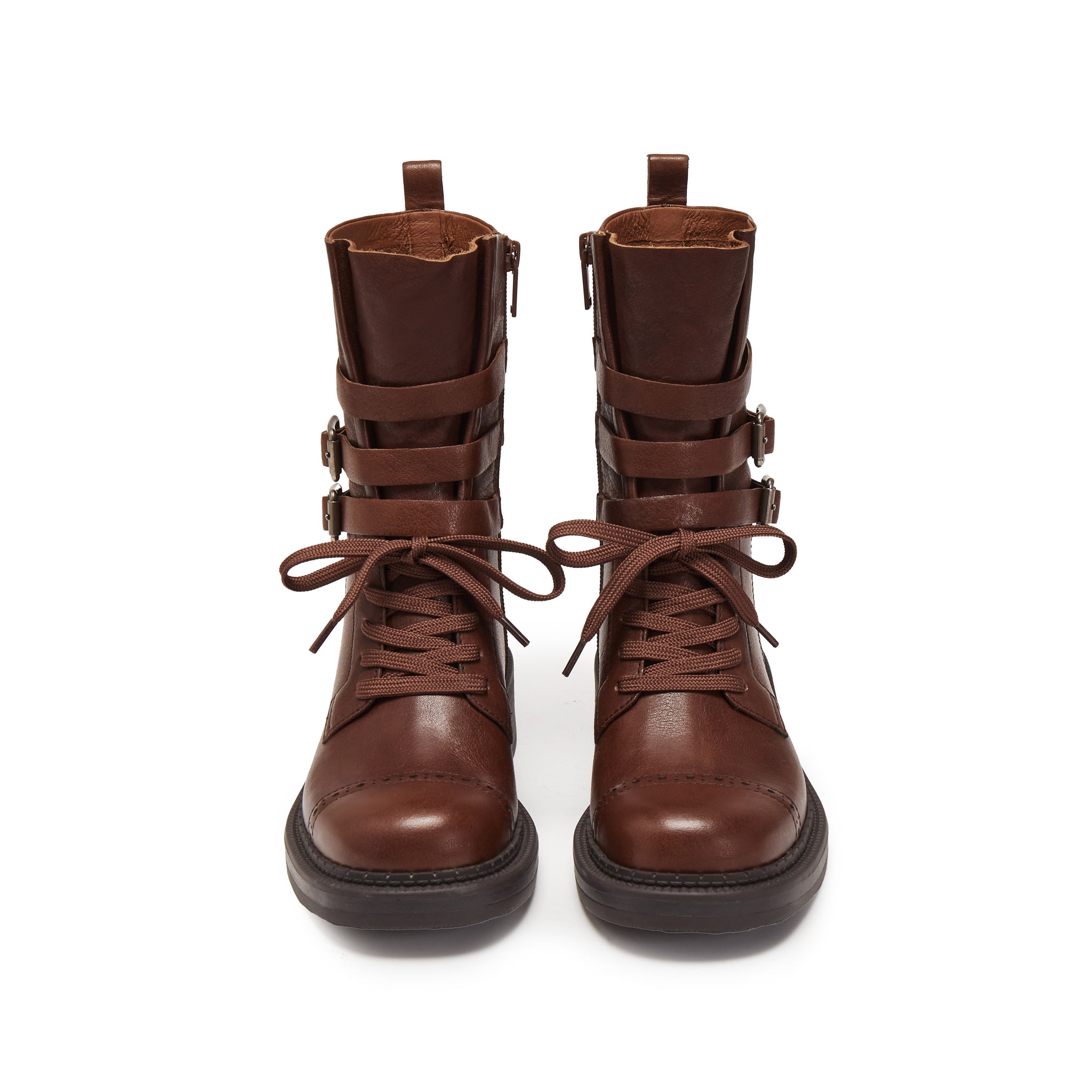 Rusty Brown Ankle Strappy Leather Combat Boots