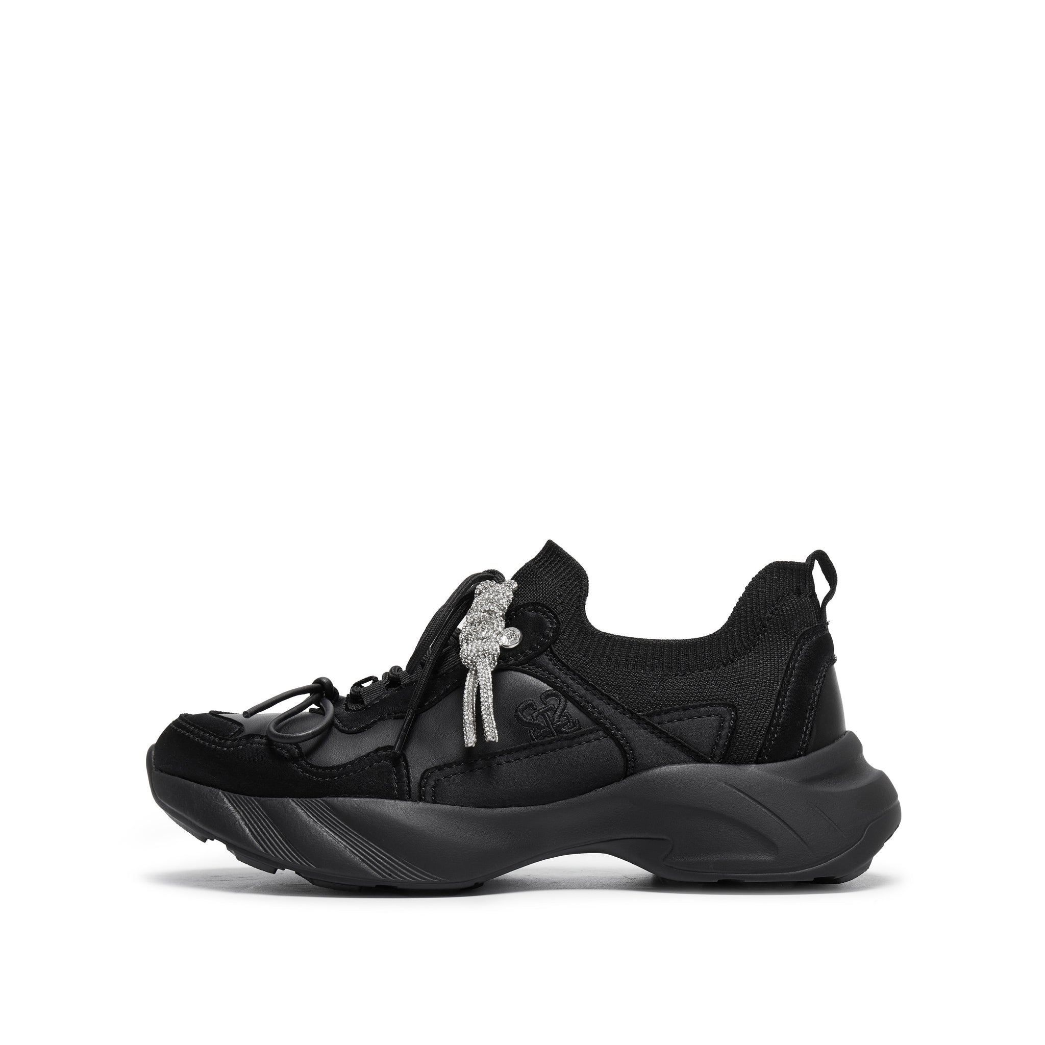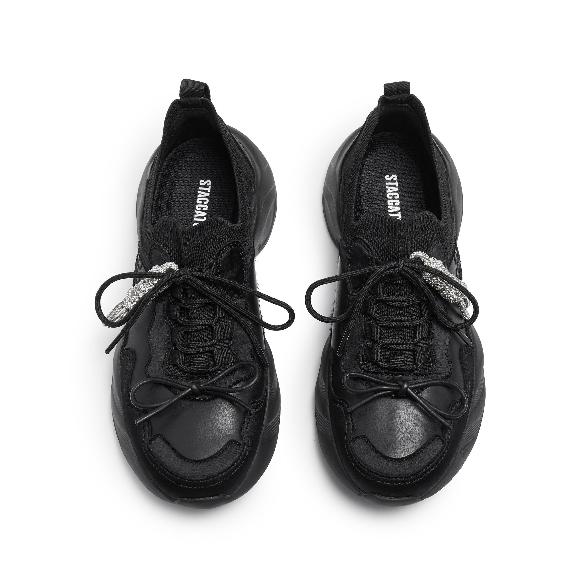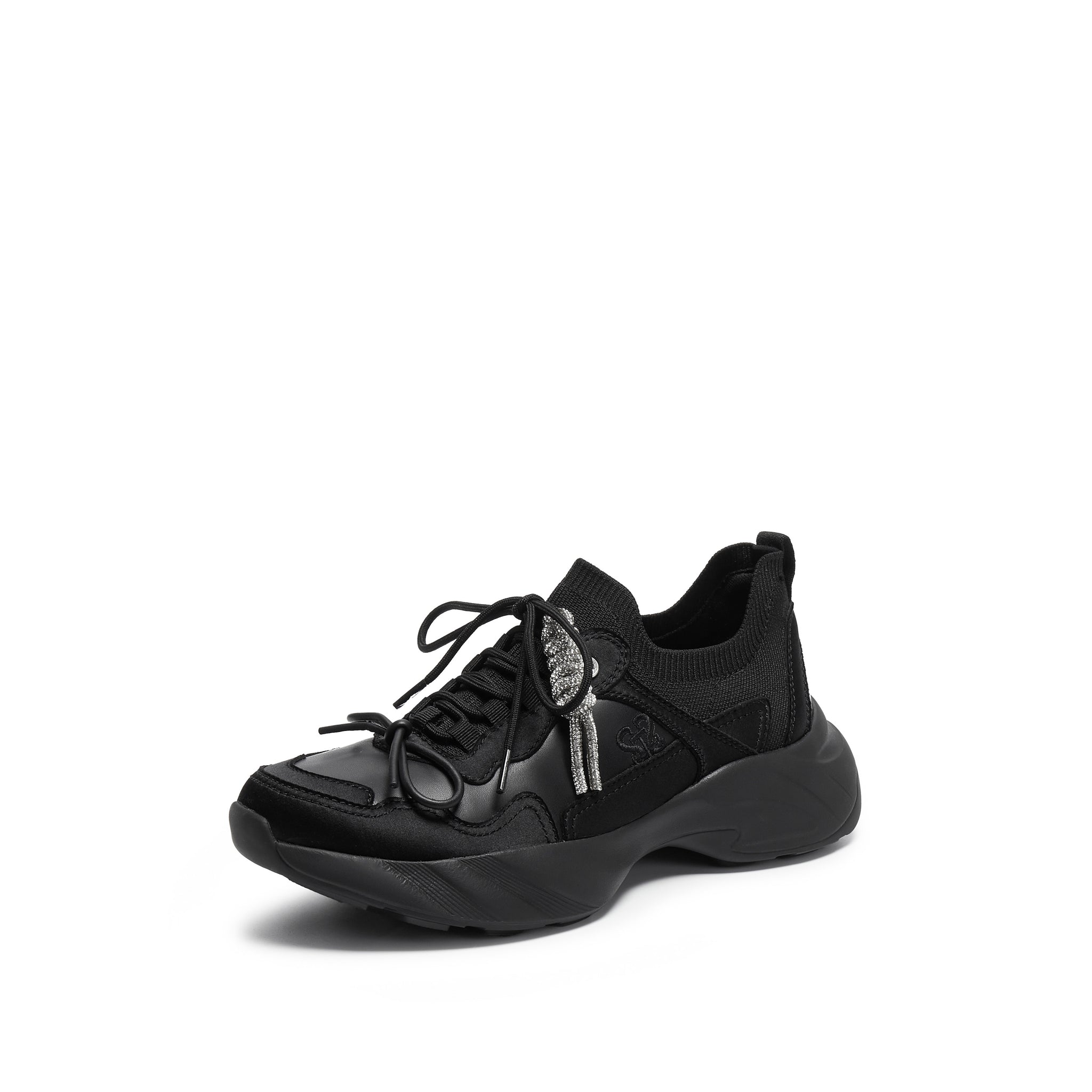Black Knit Bow Lace Up Chunky Sneakers