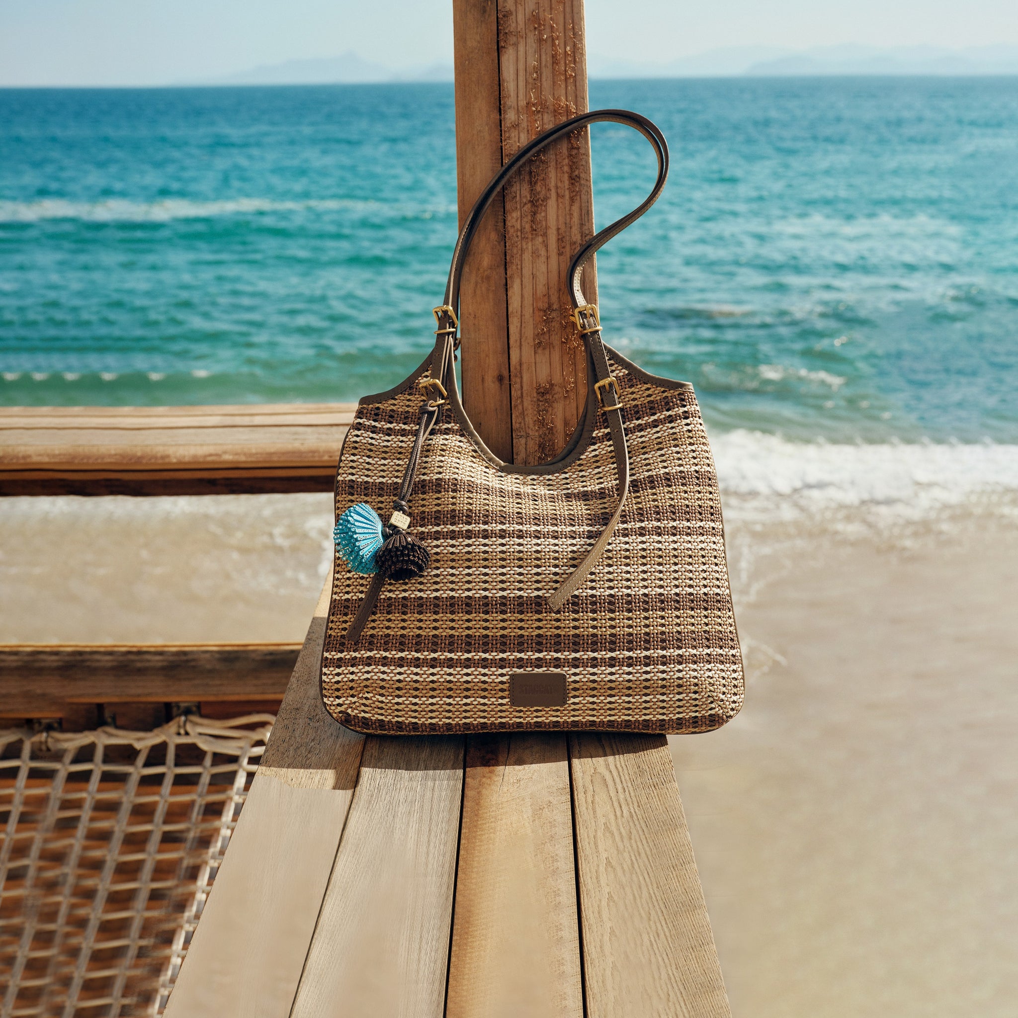 Strap Pattern Raffia Crystal Fireworks Tote Bags