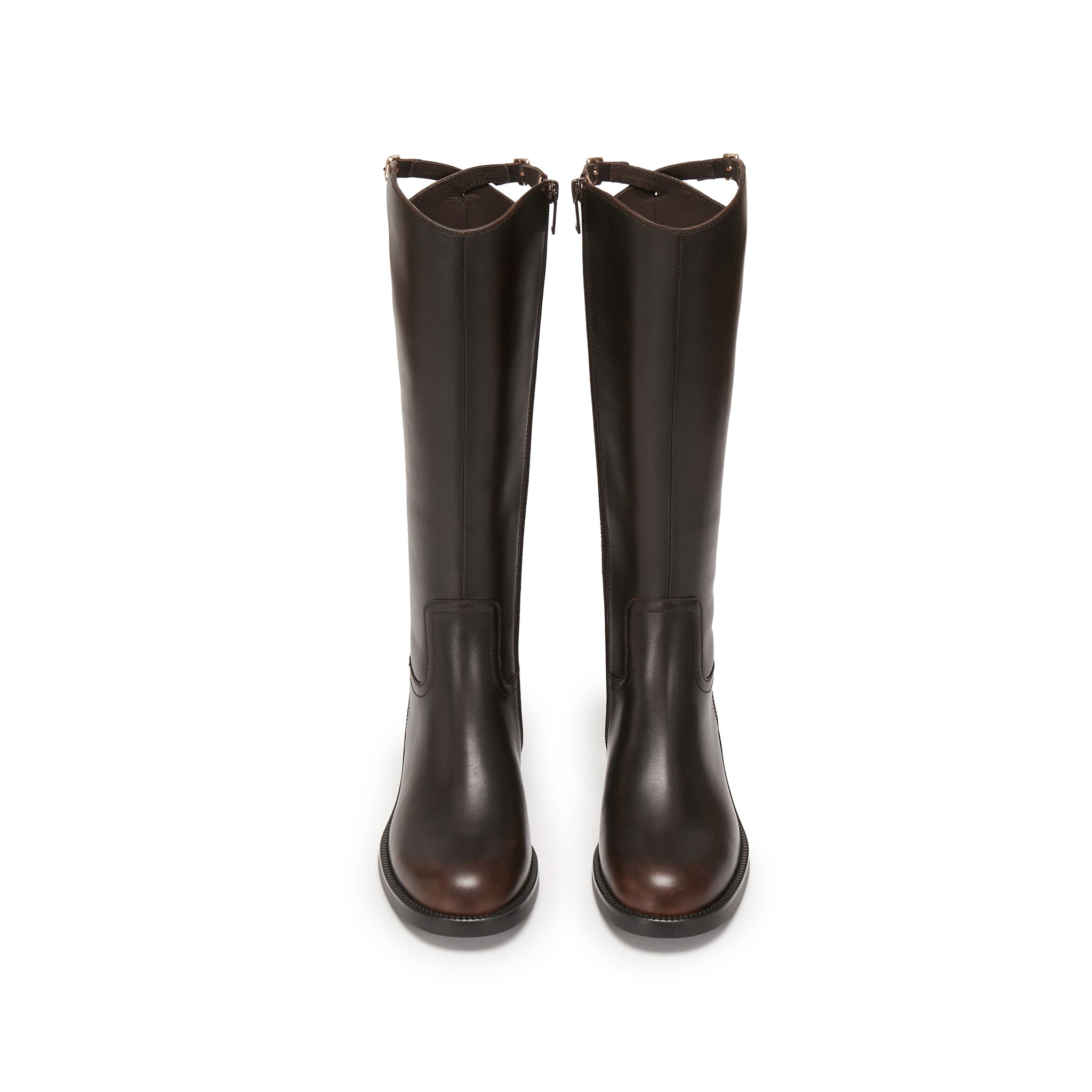 Brown Waxed Cross Buckle Long Riding Boots