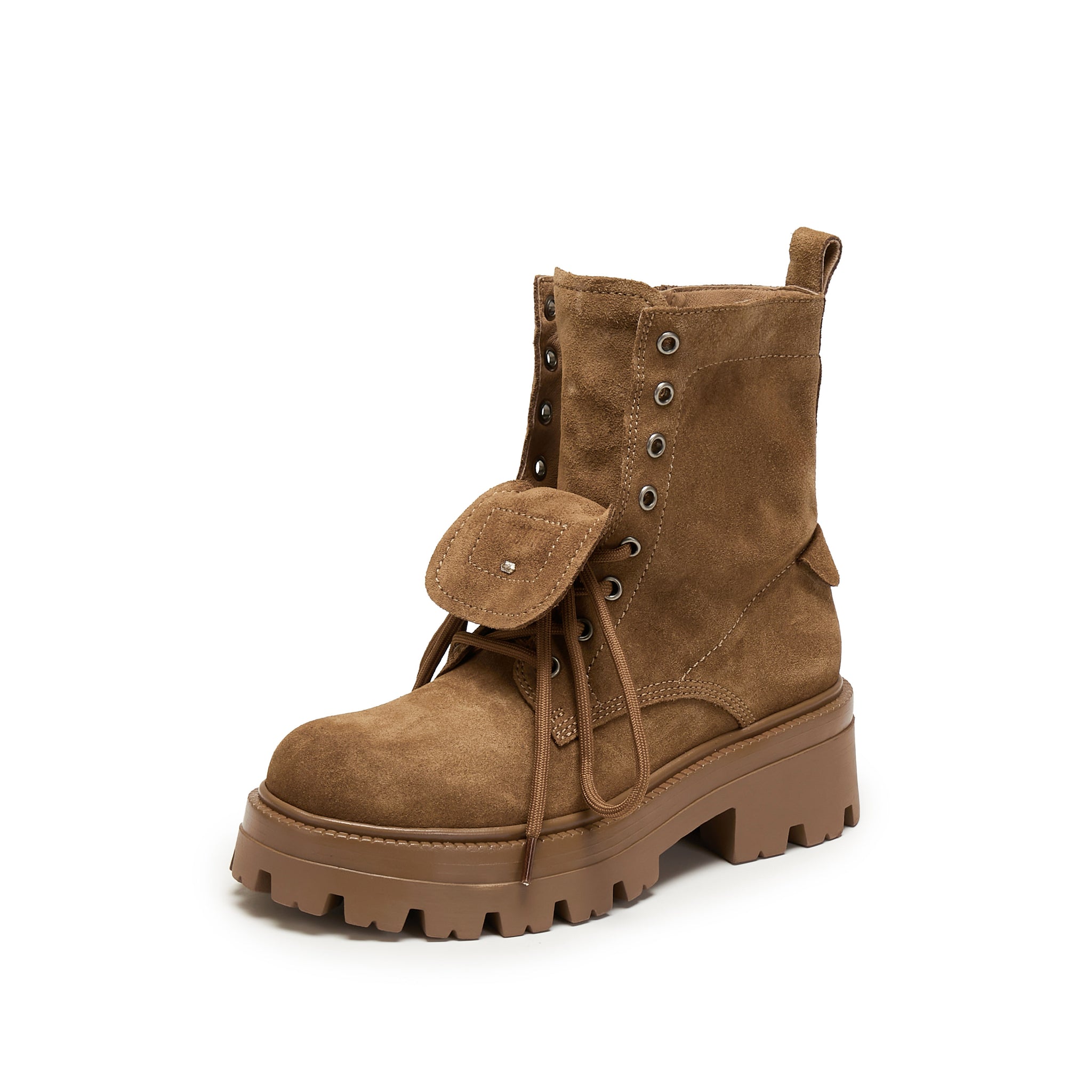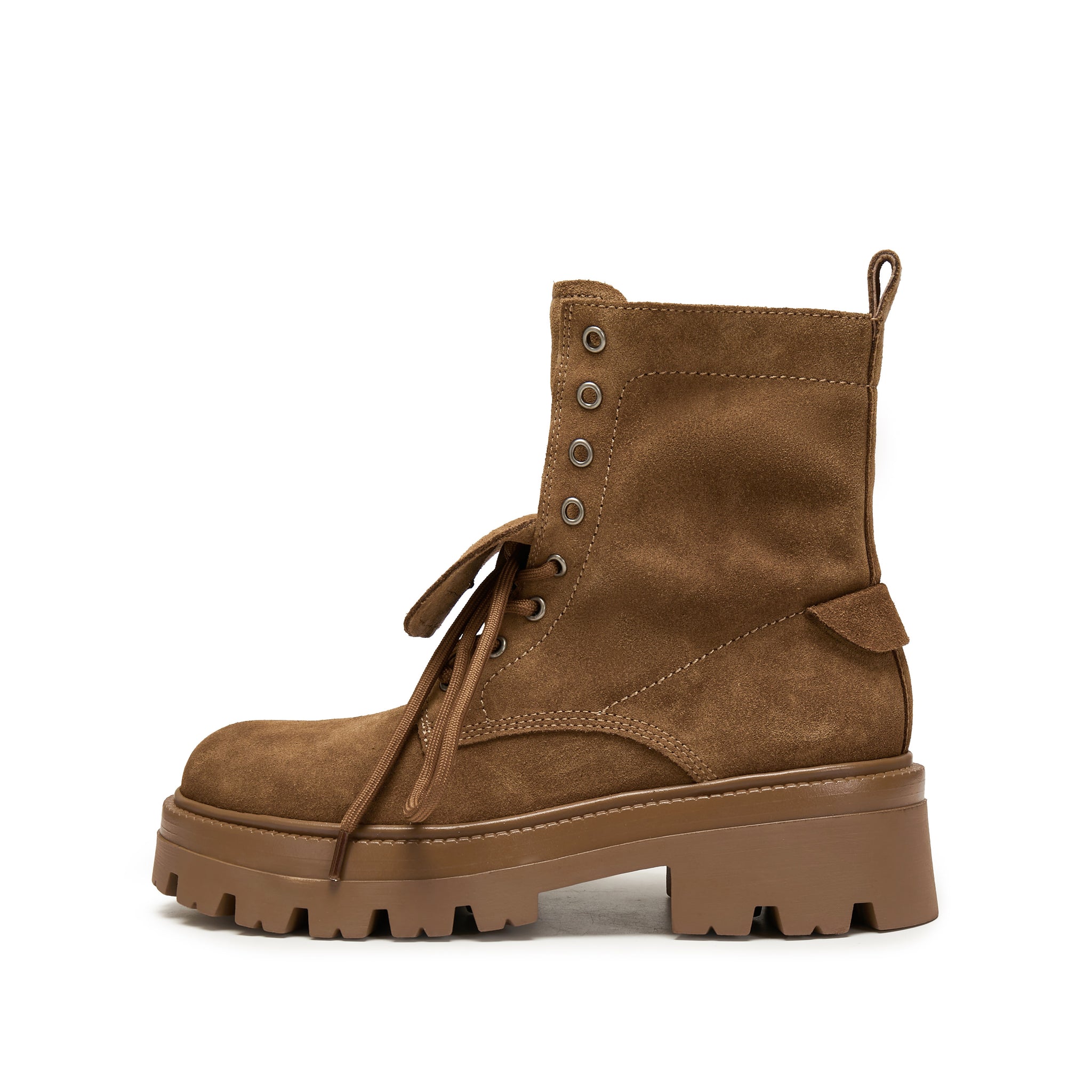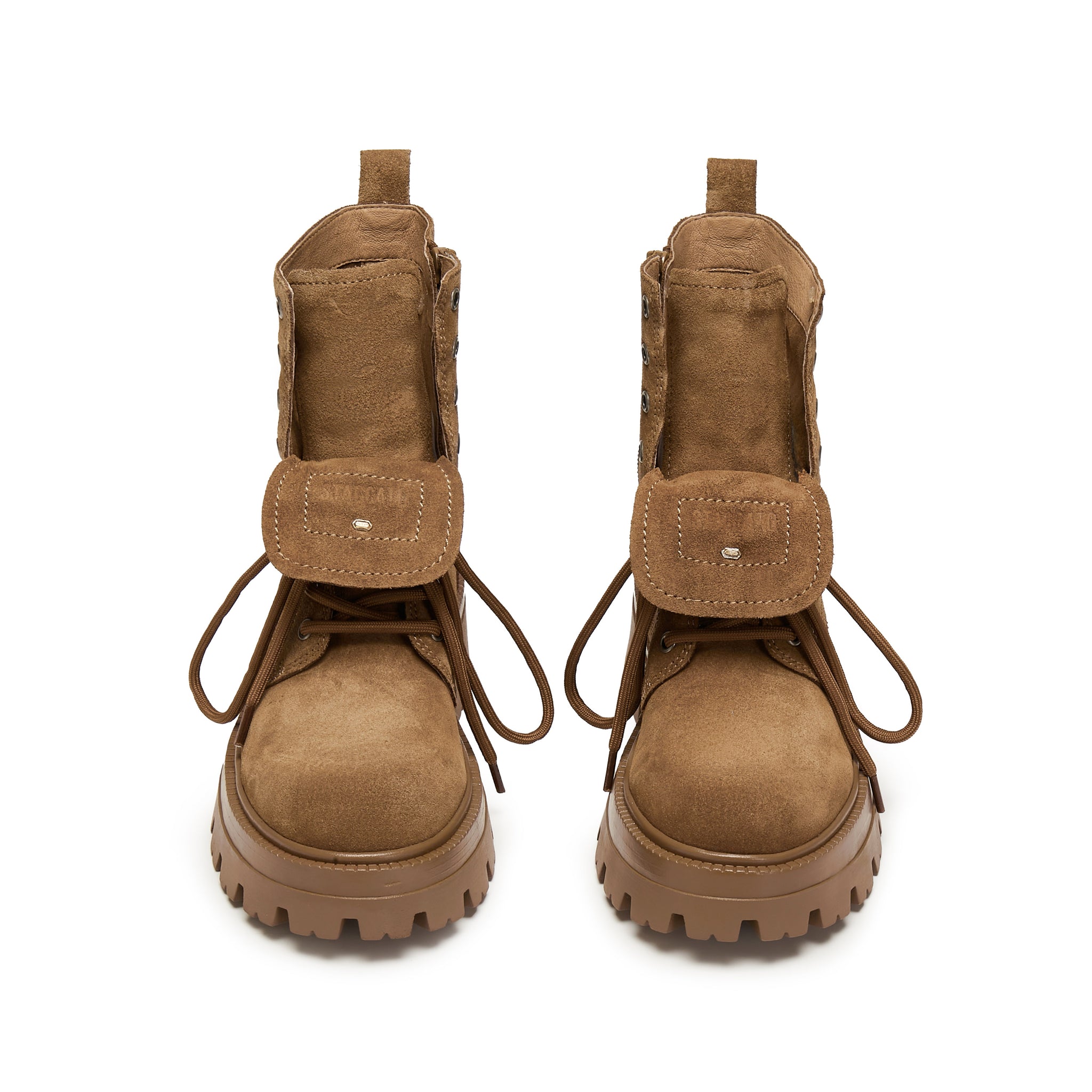 Brown Suede Double Tongue Lace Up Combat Boots
